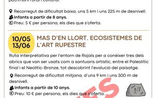 Aquest estiu s'ha habilitat el Mas d'en Llort com a Centre d'Interpretació dels ecosistemes de l'art rupestre, amb la instal·lació d'una exposició permanent sobre els ecosistemes dels barrancs de la capçalera de la Vall de Lladrons i dels plans dela Vila i els abrics amb art rupestre del terme de Rojals (Montblanc). Mitjançant un ajut de Diputació de Tarragona s'han dissenyat sis plafons informatius, molt visuals, sobre els valors naturals i culturals d'aquest interessant patrimoni per on passa la ruta del mateix nom: Mas d'en Llort, ecosistemes de l'art rupestre, que Reboll ofereix com a ruta ecoturística des de [...]